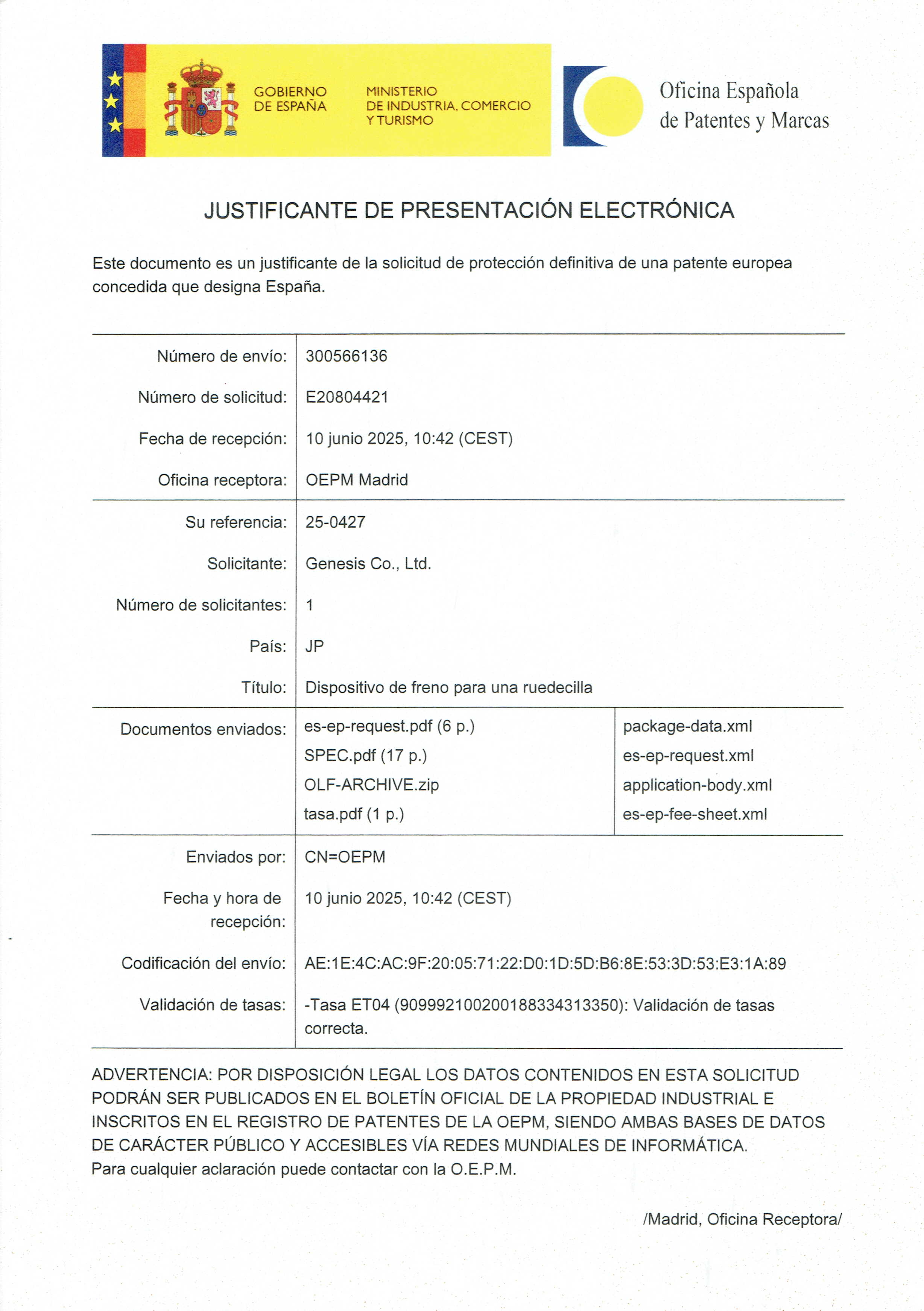 - 2025年06月10日 スペイン 特許第3835172号 「キャスターのブレーキ装置」登録済み