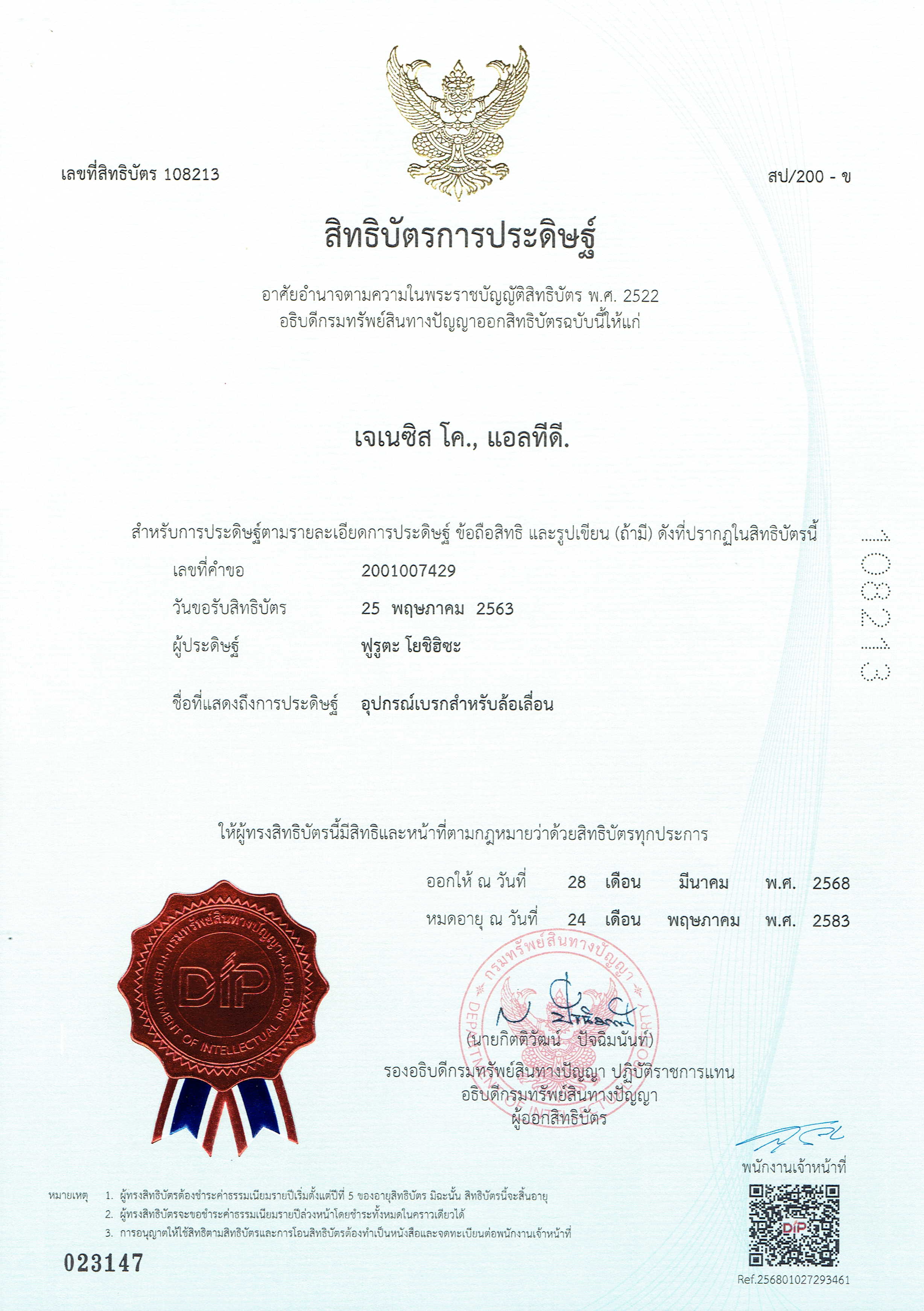 - 2025年03月18日 タイ国 特許第108213号 「キャスターのブレーキ装置」登録依頼済み